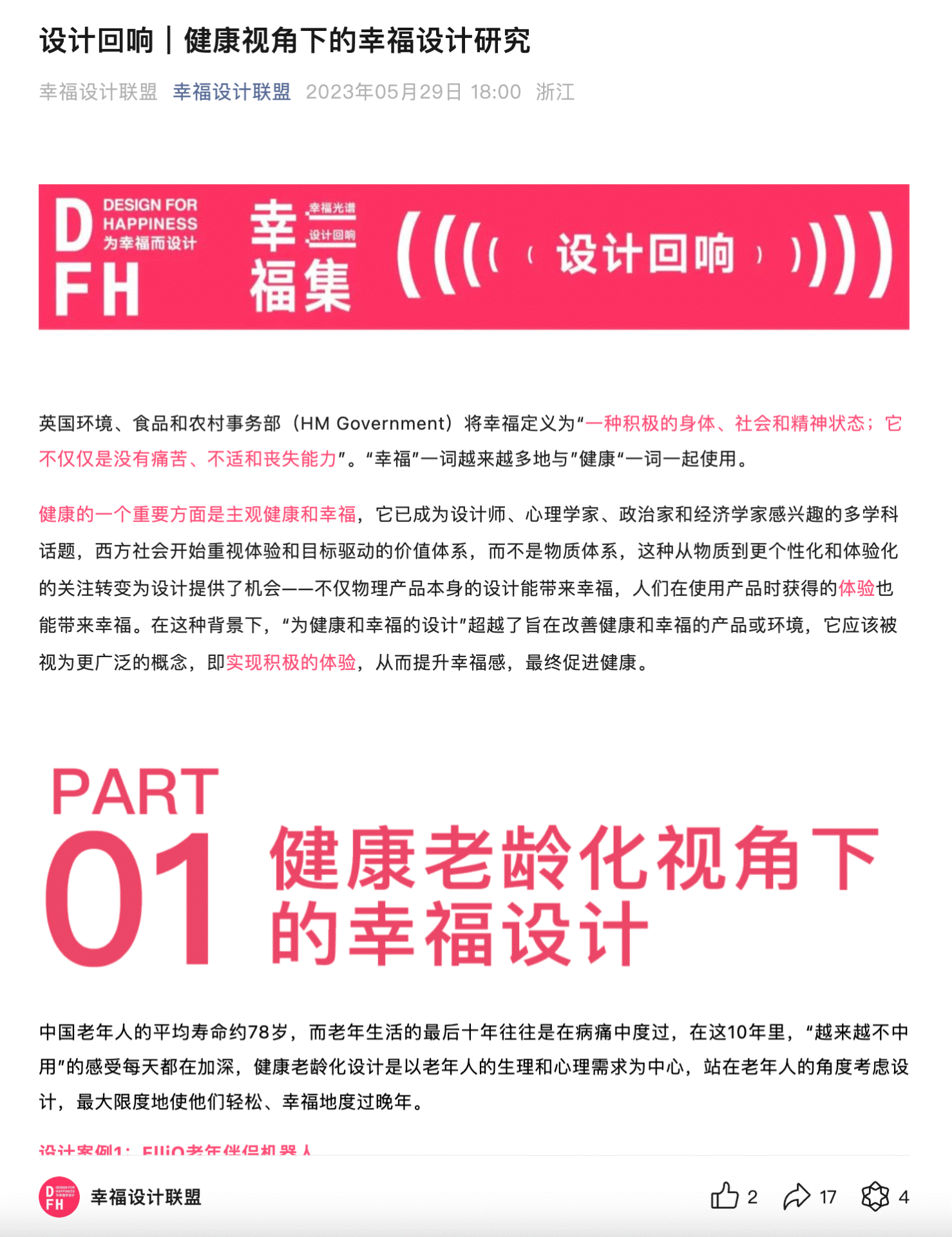 来自 潮新闻客户端 美术报 京都全球设计奖(Kyoto Global Design Award,简称 KGDA)在全球设计领域的影响力不容小觑。它如同一个强大的引擎,引领着全球设计的潮流,不断推动着设计行业向前发展。 近日,备受瞩目的2024 年京都全球设计奖的获奖者结果在11月公布,来自中国的设计师马岩松、陈正达、曾熙三位中国的杰出设计师荣耀上榜,进一步彰显了 KGDA 的国际影响力。他们在众多参赛者中脱颖而出,不仅在国内受到广泛关注,也在国际设计舞台上赢得了高度赞誉。 ![]() 2024年京都全球设计奖:从京都到世界,让设计走向国际 京都全球设计奖(KGDA)成立于2019年,是一项享有盛誉的国际竞赛。奖项致力于激发人们在设计方面的潜力,不断追求进步和突破,发现有才华的设计师,提供跨越国界的审美欣赏,展现无止境的成长精神。KGDA为了促进设计和社会之间的和谐,提供给世界各地,不论背景或国家与地区的设计师们一个独特且开放的平台,使之能展现实力。此奖还希望通过提高普通民众对文化、设计和美学的整体立场,为社会做出贡献。 京都全球设计奖的使命是表彰、发现和支持来自世界各地的杰出设计师。所有设计师,无论其背景或名声如何,都可以通过京都全球设计奖获得前所未有的认可。该奖项还旨在通过在公众中创造对文化、设计和美学的新看法来为社会做出贡献。自成立以来,京都全球设计奖已成为设计影响生活方式、社区和趋势的催化剂。它还启发人们发展更多的美感,使他们有能力感知和欣赏好的设计。简而言之,京都全球设计奖的目的是让有才华的设计师得到他们应得的国际认可。 ![]() 未来:设计驱动的幸福新范式 陈正达教授的“为幸福而设计”在作为2024年京都全球设计奖(KGDA)“设计理论类”唯一年度获奖榜单。 该课题将继续深入推进跨学科的理论研究与设计实践,探索设计在智慧城市、社区建设、公共服务等领域的潜在价值。研究团队相信,通过系统化的设计方法论,可以有效推动社会幸福感的提升,并为未来社会的发展提供新的解决思路。 这一课题的成功不仅展示了设计作为幸福驱动工具的巨大潜力,更为设计研究的未来方向指明了道路。随着课题的不断深化,“为幸福而设计”必将成为设计界和学术界共同探索的重要课题,引领未来幸福社会的建设。通过设计赋能,我们相信可以将幸福感从抽象的理念转化为拆解为具象的幸福感变量,并通过设计行为去干扰变量以达到幸福感提升的效果,让人们在日常生活中可切实的感知体验,为21世纪的幸福社会创造更多可能。 ![]() 为幸福而设计:生命终极意义之通路 幸福是生命的意义与目的,是人类生存的目标与终点。——亚里士多德 亘古以来,人类追求幸福的脚步从未止歇。原始人首次运用弓箭猎杀猛兽之际,正是为狂烈的幸福感所裹挟之时。可以说,幸福并非生活的常态化存在,幸福是生活切实改善时的狂喜欢愉,幸福是诚心满意的美好心境,幸福是平和与激情并存的生活状态。 正因如此,数千年来,每一次科学的创新与技术的变革都意味着人类整体福祉的增进与幸福阈值的提升。然而,在当今这个科技迭代、万物互联、算力日益强大、元宇宙大爆发的时代,生活无忧,你,幸福吗? 哲学、心理学、社会学、文化学、医学……多视域、多维度、跨学科,是否能找到幸福的灵药? 在这里,我们,一群设计人,邀请您环顾周遭的生活:桌椅杯盘、衣帽鞋袜、屋宇舟车……这个在“神创”世界中的“人造”世界,这个被无数“设计”包裹的世界,谁说幸福与设计无关?设计的本质是变革,其存在是为了优雅而有远见地解决问题。只因设计在人类社会中无所不在,所以这一“幸福维度”才更被忽视了。 伴随着科技的迭代,设计无疑拥有了更多新的可能。甚至生活中的每一个复杂问题都可以作为设计问题或通过设计予以解决。我们确信,美好的生活源于设计,正是设计赋能才使抽象的幸福具象化、可视化。 “让人民生活幸福,就是国之大者”。我们要积极回应国家战略勇于担当,要投入时代进程勇立潮头!行动起来吧!我们的使命是去探索一套具有广泛性的、跨学科的多维设计方法论,并引领人人参与,以应对当今复杂的幸福命题,去重新发明日常,并自我发明!如此,我们或许可以让21世纪人类命运进程中的决定性一幕在中国发生! 项目概括: 多维设计视角下的幸福探索:从“视觉治愈”到“为幸福而设计” 在现代社会经济飞速发展的背景下,幸福感的提升已成为全球关注的重要议题。近年来,国内外学术界和设计界逐渐认识到,通过设计提升幸福感的潜力。特别是在中国经济腾飞、生活水平显著改善的今天,如何通过系统性设计来回应国民幸福感偏低的问题,成为亟待解决的挑战。基于此,国内一支以陈正达教授为核心组成的设计研究团队历经多年探索,逐步形成了开创性的“为幸福而设计”课题,取得了一系列富有成效的研究成果。 ![]() 视觉治愈 陈正达 著 中国美术学院出版社 ISBN 978-7-5503-2476-3 (为幸福而设计封面) 从“视觉治愈”到幸福设计的跨越 该研究项目的起点是“视觉治愈”理念——通过视觉设计元素优化用户体验,从而缓解心理压力,带来情绪上的治愈。然而,研究团队很快发现,仅靠视觉层面的设计无法全面提升人们的幸福感。真正的幸福不仅依赖于感官愉悦,还涉及情感、心理、社会关系等多方面因素。
